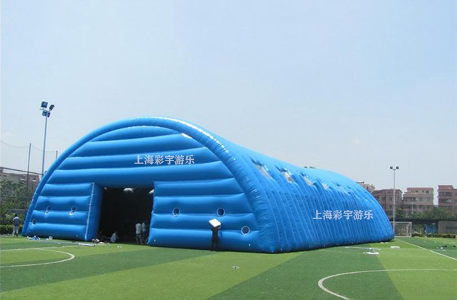 充氣帳篷屬于帳篷的一種采用結構力學的原理設計框架,利用氣體壓強特性將氣囊膨脹形成具有一定剛性的柱體,經過有機組合撐起帳篷的骨架。隨著采用的骨架材料的強力大小,可以設定帳篷的承重大小,采用高分子涂層的性能優劣,決定著框架的使用壽命與框架剛性的維持,而氣室設定的合理性,則決定著這個框架的撐起極限。主要用于防潮、防水、抗風、防塵、防曬、搶險救災、